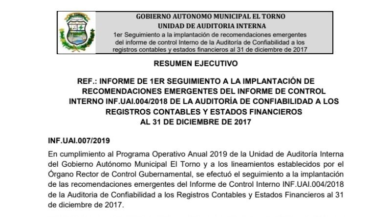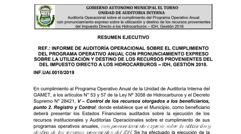 Leer másREF.: INFORME DE AUDITORIA OPERATIVA DE LOS RECURSOS PROVENIENTES DEL IDH GESTIÓN 2016 Informe: INF.UAI.003/2017 En cumplimiento al Programa Operativo