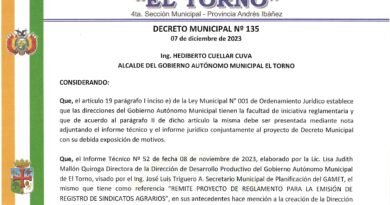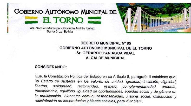 DECRETO MUNICIPAL N° 85 GOBIERNO AUTÓNOMO MUNICIPAL DE EL TORNO