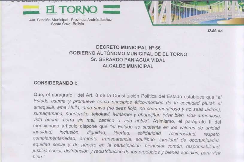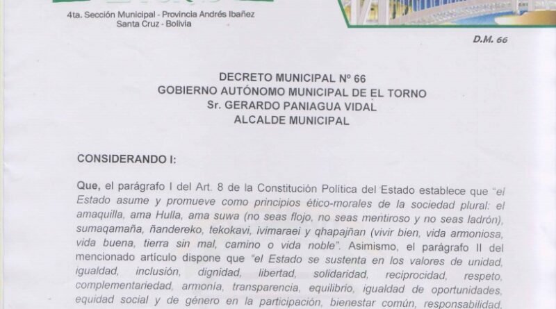 Que, el parágrafo I del Art. 8 de la Constitución Política del Estado establece que «el Estado asume y promueve como principios ético-morales de la sociedad plural: el amaquilla, ama Hulla, ama suwa (no seas flojo, no seas mentiroso y no seas ladrón), sumaqamaña, ñandereko, tekokavi, ivlmarael y qhapajñan (vivir bien, vida armoniosa, vida buena, tierra sin mal, camino o vida noble. Asimismo, el parágrafo II del mencionado artículo dispone que el Estado se sustenta en los valores de unidad, igualdad, inclusión, dignidad, libertad, solidaridad, reciprocidad, respeto, complementariedad, armonía, transparencia, equilibrio, igualdad de oportunidades, equidad social y de género en la participación, bienestar común, responsabilidad, justicia social, distribución y redistribución de los productos y bienes sociales, para vivir bien.