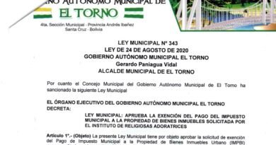 Por cuanto el Concejo Municipal del Gobierno Autónomo Municipal de El Torno ha sancionado la siguiente Ley Municipal