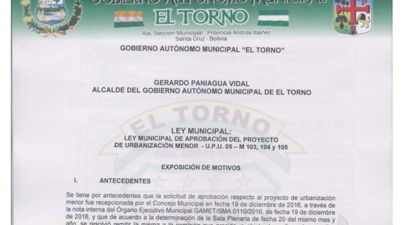 LEY MUNICIPAL N° 130 DE DESARROLLO TERRITORIAL SOSTENIBLE