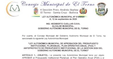Es deber y atribución del Gobierno Autónomo Municipal de El Torno, brindar un solemne, cálido y fraterno recibimiento como merecen nuestros ilustrlsimos visitantes, El Concejo Autónomo Municipal de El Torno, en uso de sus legitimas atribuciones que le confiere la Constitución Política del Estado, la Carta Orgánica Municipal de El Torno, la Ley Municipal N° 001 de Ordenamiento Jurídico Interno, el Reglamento General del Concejo Municipal de El Torno y otras disposiciones en vigencia.