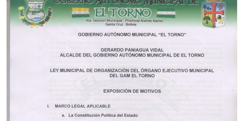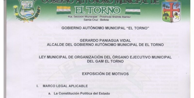 LEY MUNICIPAL DE ORGANIZACIÓN DEL ÓRGANO EJECUTIVO MUNICIPAL DEL GAM EL TORNO