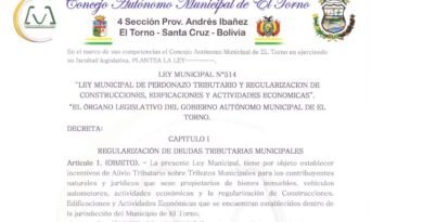 Es deber y atribución del Gobierno Autónomo Municipal de El Torno, brindar un solemne, cálido y fraterno recibimiento como merecen nuestros ilustrísimos visitantes, El Concejo Autónomo Municipal de El Torno, en uso de sus legitimas atribuciones que le confiere la Constitución Política del Estado, la Carta Orgánica Municipal de El Torno, la Ley Municipal N° 001 de Ordenamiento Jurídico Interno, el Reglamento General del Concejo Municipal de El Torno y otras disposiciones en vigencia.
