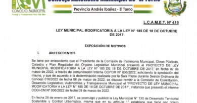 Por cuanto el Concejo Municipal del Gobierno Autónomo Municipal de El Torno ha sancionado la siguiente Ley Municipal.