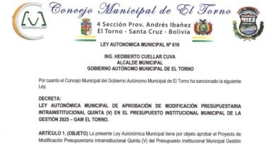 LEY MUNICIPAL DE APROBACIÓN DEL PROYECTO DE MODIFICACIÓN PRESUPUESTARIA EN EL PRESUPUESTO INSTITUCIONAL MUNICIPAL DE LA GESTIÓN 2017 – GAM EL TORNO.