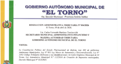 CONSIDERANDO: Decreto Supremo N° 4352, dispone ampliar las medidas de la fase de post confinamiento con vigilancia comunitaria activa de casos de Coronavirus (COVID- 19) hasta el 31 de octubre de 2020.Que, la Carta Orgánica Municipal de El Torno en su numeral 3 del Artículo 18 establece que la RESOLUCIÓN ADMINISTRATIVA es la norma emitida por las diferentes autoridades del Órgano Ejecutivo, en el ámbito de sus atribuciones.