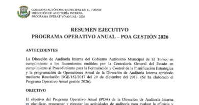El resultado de este informe será emitido a la Máxima Autoridad Ejecutiva del Gobierno Autónomo Municipal El Torno y enviado a la Contraloría General del Estado.